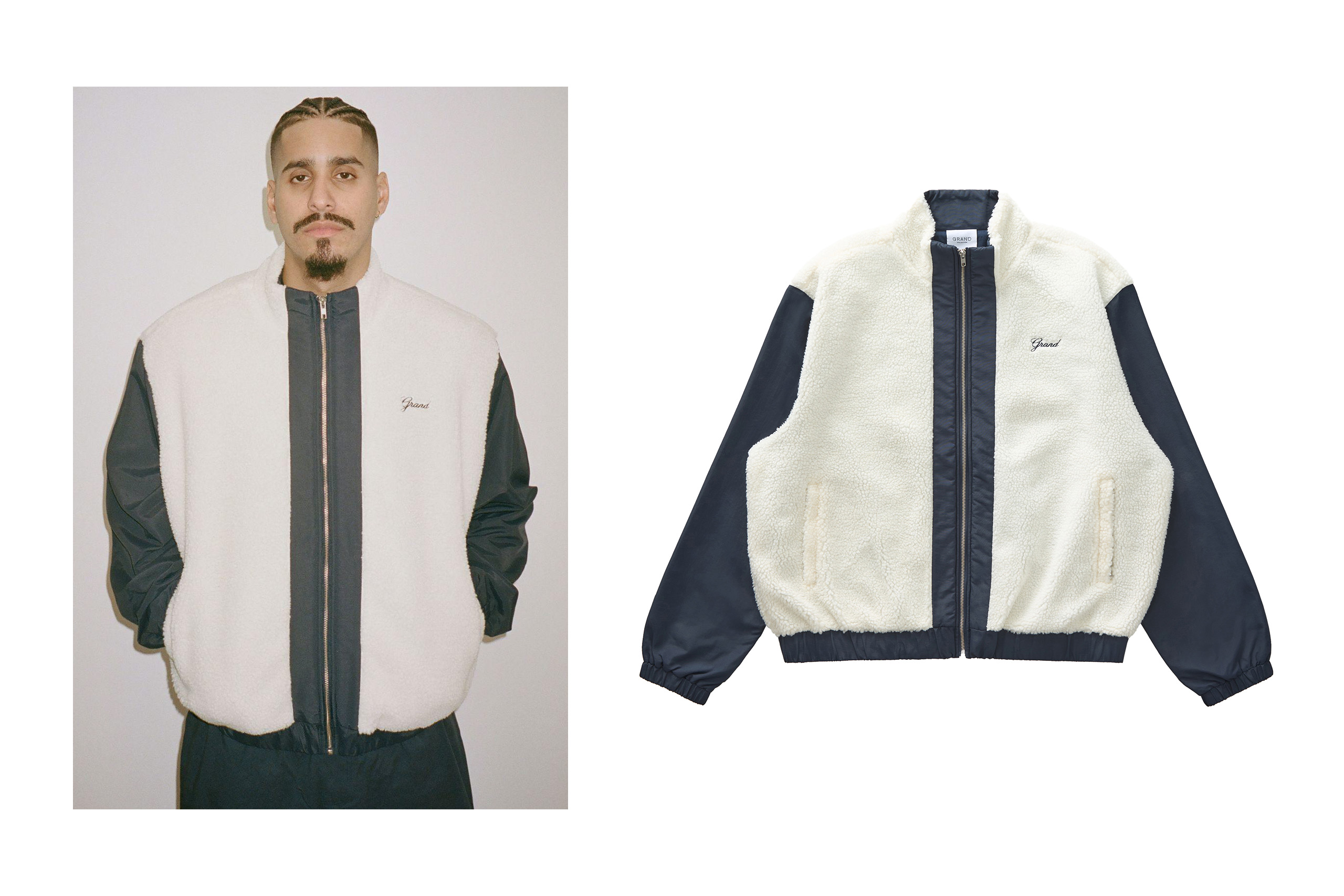*Sherpa/Nylon Track Jacket – White/Navy