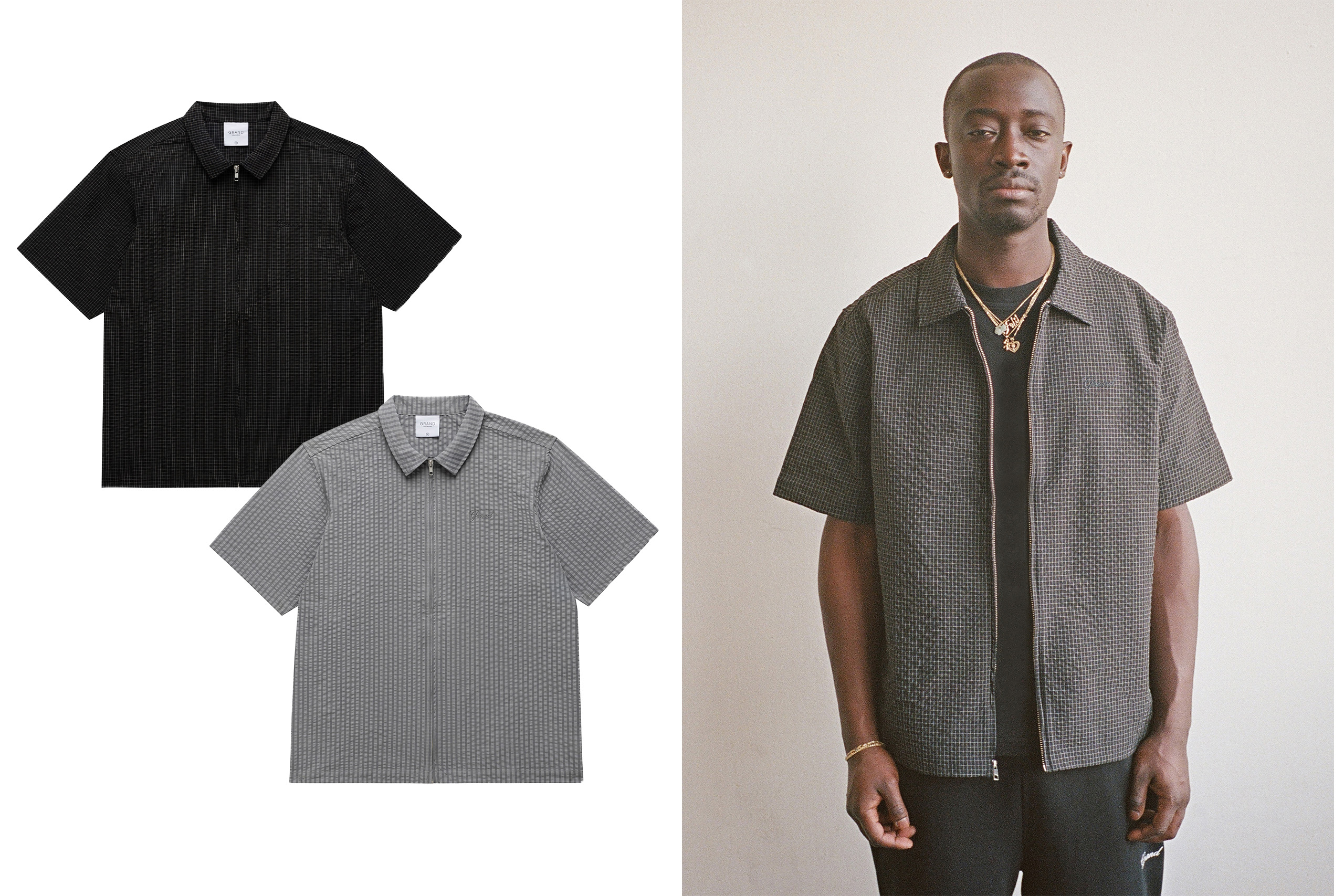 *Seersucker Zip Up S/S Shirt